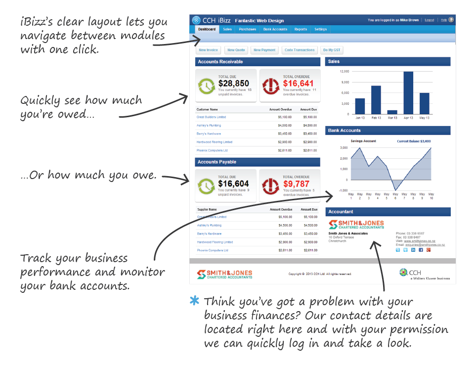 Collaborate like never beforeCCH iBizz integrates closely with the software we use in our practice, iFirm. With your permission, we can access your real-time business information and provide you with tailored and robust business advice. ![]() |