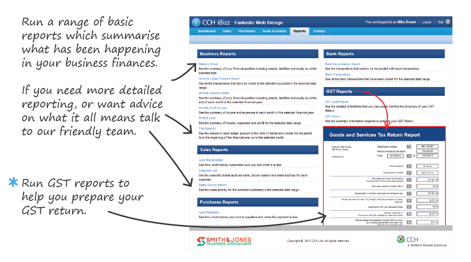What is CCH iBizz?CCH iBizz is online accounting software that's the perfect solution for businesses who want to be more active in managing their accounts while still having the security of knowing that our support and advice is only a click away.From streamlining your sales and purchase processes to reconciling your bank statements, CCH iBizz is a powerful tool for running your business. You'll save time and gain insight into your businesses performance. CCH iBizz runs from the convenience of the cloud meaning there are no files to transfer or out of date data. It's all online, and it's easy. |